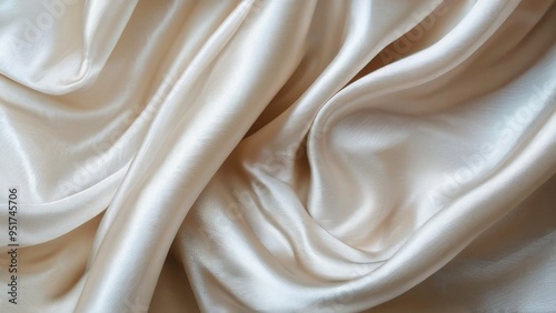 Close-up of smooth, creamy satin fabric with soft, flowing folds and wrinkles.