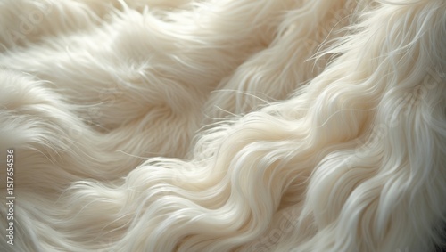 Close-up of soft, puffy white fur fabric with smooth texture