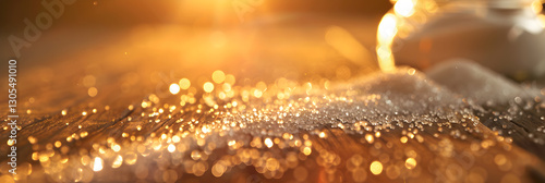 Close-Up of Sugar Granules on Wooden Table with Soft-Focus Sugar Jar in Background