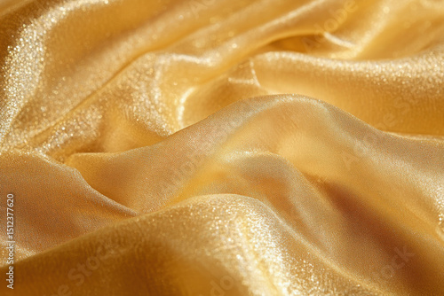 Close-up of textured gold fabric with intricate patterns, shimmering surface, and a luxurious opulent feel