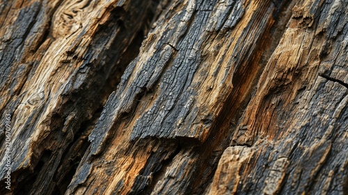 Close-up of textured, weathered wood with dark and light patterns.