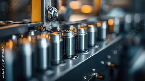 Closeup of the automated cleaning system washing cans before labeling