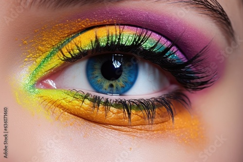 close-up of the eye with bright makeup, ai generative