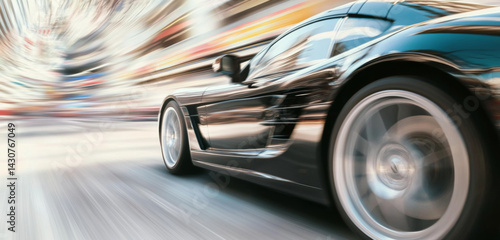 Close-up of the front wheel and car body in motion blur, perfect for dynamic background