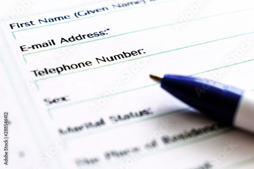 Closeup of the questionnaire on white background for paper design. Professional equipment. Business technology. Macro closeup.