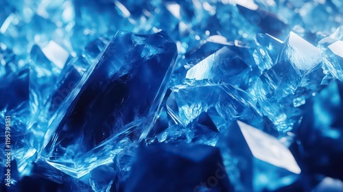 Close-up of vibrant blue crystals, showcasing their sharp edges and translucent texture.