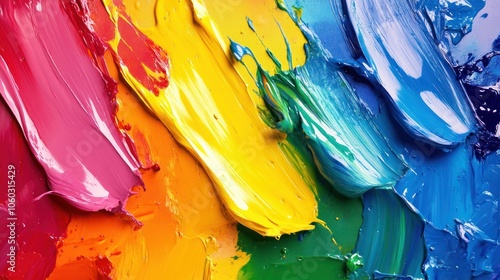 Close-up of vibrant, colorful oil paint strokes, creating an abstract background texture.