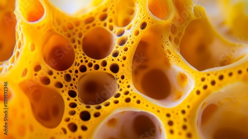 Close-Up of Vibrant Yellow Sponge Texture with Intricate Bubble Patterns Showcasing Natural Forms and Textures for Abstract Art and Design Projects