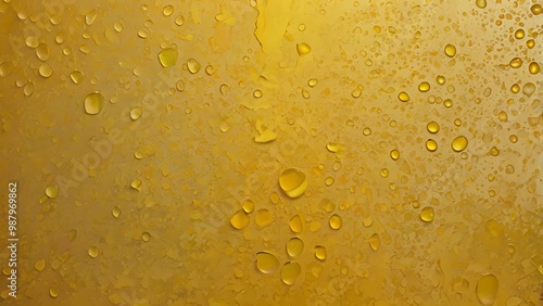 Close-up of water droplets on a smooth yellow surface creating an abstract texture and pattern