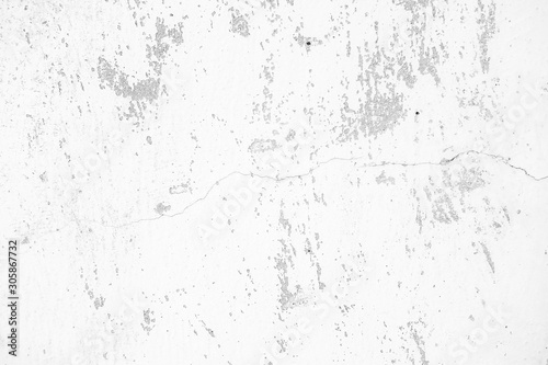 Close-up of White cement wall peeled paint caused by water and sunlight. Peel wall of White house paint with black stain. Black and White of Texture background.