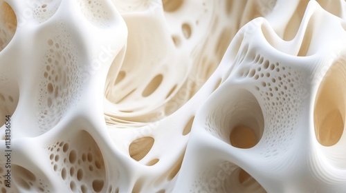 Close-up of white porous, organic structures resembling abstract bone or coral, blending texture, biology, and natural art in delicate creamy tones