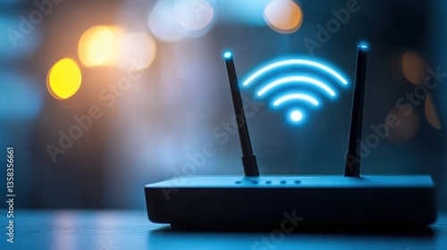 Close-Up of Wireless Router Antenna Emitting Signals in Soft Light