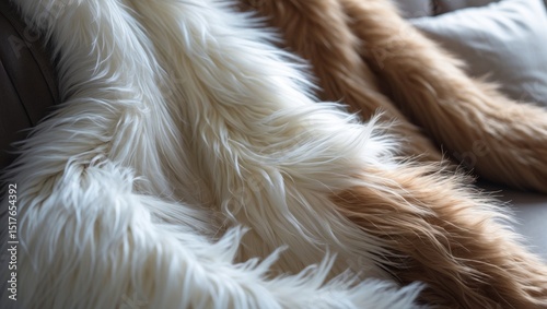 Close-up of wool texture on a natural sheepskin rug background