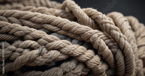 Close-up of worn rope, fibers unraveling, near breaking point, isolated, frayed, sisal