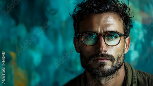 Close-up portrait of a man with a serious expression.