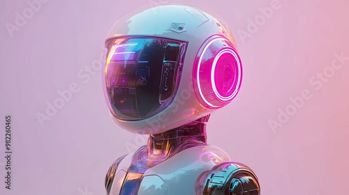 Close-up Portrait of a White Futuristic Robot with Pink Lighting