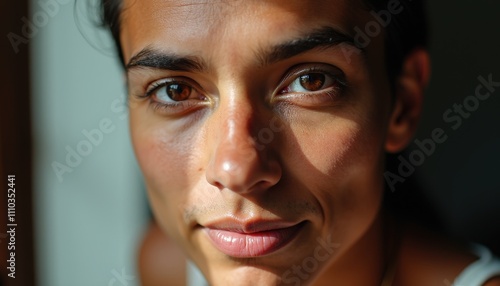 Close-Up Portrait of an HIV Positive Individual with a Hopeful Gaze Reflecting the Inner Strength and Resilience in the Ongoing Battle Against the Disease.