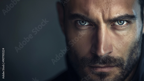 Close-Up Portrait of Serious Man with Determined Look. Ideal for Professional Designs, Intense Marketing, and Focused Visuals. Strong Characters, Business Campaigns, and Inspirational Imagery.