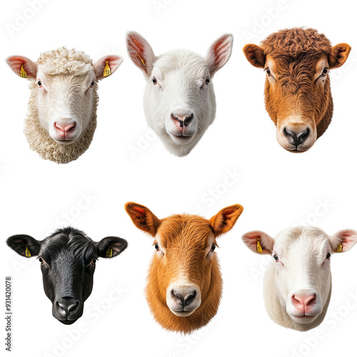 Close-up portraits of six different cows, showcasing unique features and colors in a captivating farm setting.