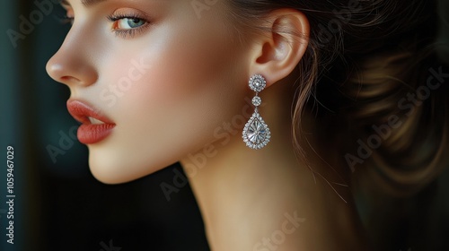 Close-up profile of a young woman showcasing elegant earrings, Ideal for beauty, fashion, or jewelry marketing materials, highlighting sophistication and style