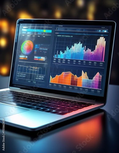 closeup screen of the laptop or notebook device, displaying the colorful website traffic