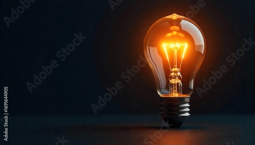 Close-up shot of a glowing light bulb, illuminating a dark background, symbolizing inspiration and new ideas Perfect for presentations, websites, or creative projects , innovation, success