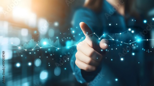 Close-Up Shot of Financial Analyst Pointing at Digital Graph with Data Points Representing Market Trends and Insights in Modern Office Setting