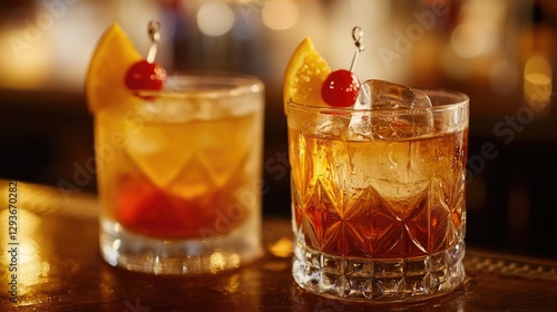 Close-up shot of two drinks placed on a table, suitable for advertising or promotional use