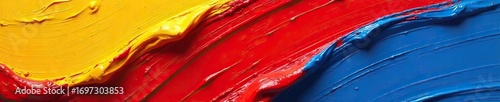 Close-up shot of vibrant, richly saturated paint strokes in powerful hues of red, blue, and yellow, demonstrating the concept of strength and color intensity , bold, intense, design