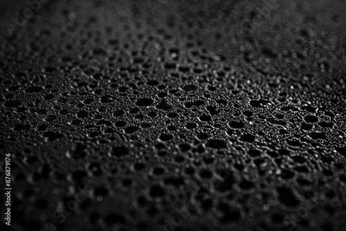 Close-up shot of water droplets on a black surface, great for scientific or technology-related contexts