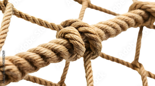 Close-up Sturdy Knot Rope Net Isolated White Background