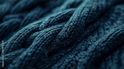 Close-Up Texture of Cozy Knitted Fabric in Deep Teal Color