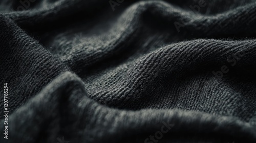 Close-up texture of dark green knitted fabric with soft folds and curvatures suitable for textile backgrounds Copy Space