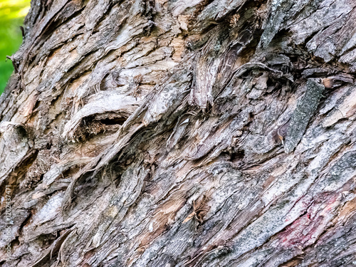 Close-up texture of lilac bark. Latin name Syringa. Old tree bark background.