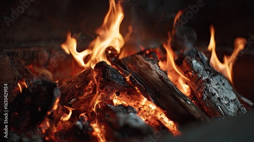 Close-up view of a blazing fire