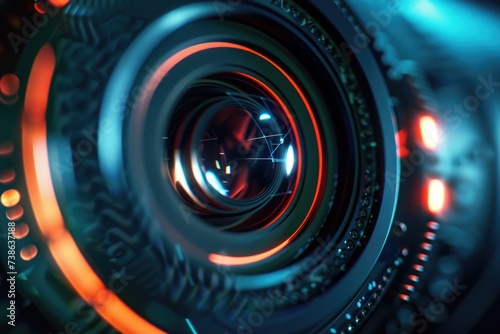 Close-up view of a camera lens. Perfect for photography enthusiasts and professionals.