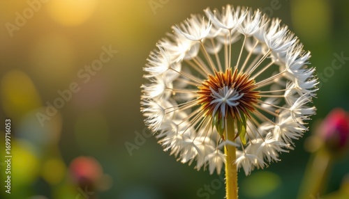 Close-up View of a Dandelion Flower with Sunlight in the Background, Capturing the Beauty of Nature and Delicate Seeds
