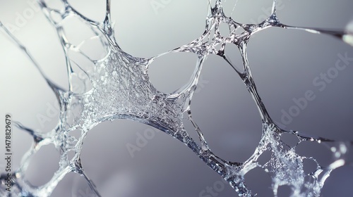 Close-up View of a Delicate Ice Glass Crack Structure. Intricate Details and Sparkling Light Reflecting Through the Crack.