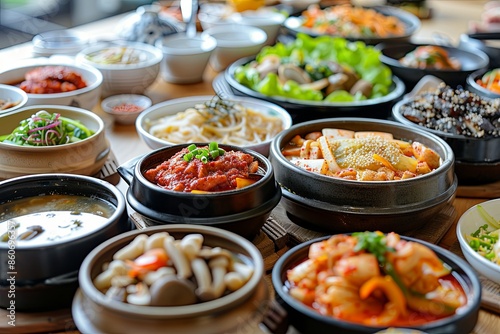 Close-Up View of a Korean Dining Table Featuring an Array of Traditional Dishes