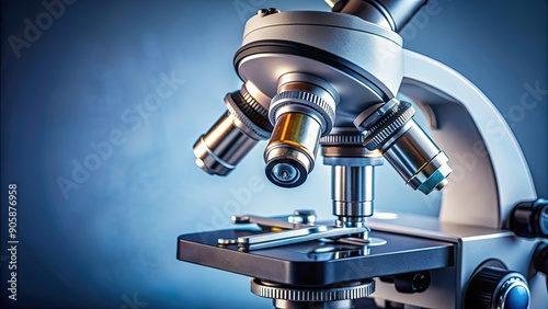 Closeup view of a microscope with ocular and objective lenses, Science, Laboratory, Research, Magnification