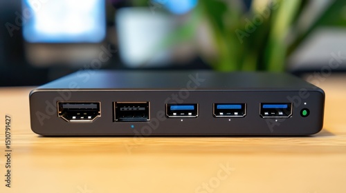 Close-up view of a modern device's rear panel with multiple ports.