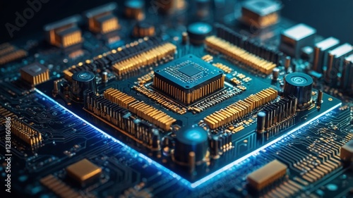 Close-up view of a modern microprocessor showcasing intricate details of a circuit board and gold connections