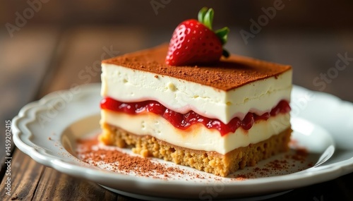 Close-up view of a single serving tiramisu, showing texture , espresso, dessert photography