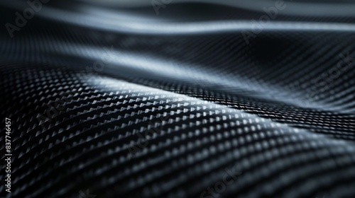 Close-up view of a sleek and modern carbon fiber texture with waves and light reflections, showcasing its strength and aesthetic appeal.