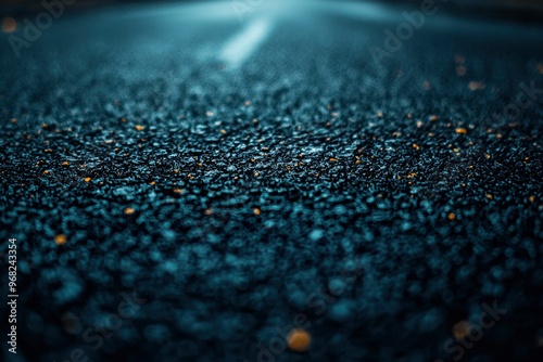 Close-up View of a Wet Asphalt Road Surface with a White Line in the Distance