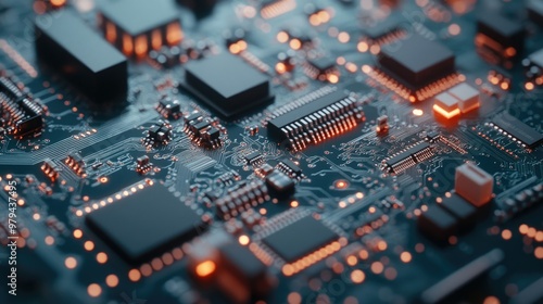 Close-up view of a wireless audio circuit board, highlighting its microchips and fine soldering, against a white background.