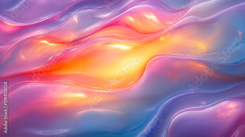 Close-up view of an iridescent mother of pearl texture, showcasing the natural, abstract swirls of soft, luminous colors that mimic the gentle waves of light reflecting off a pearl-like surface