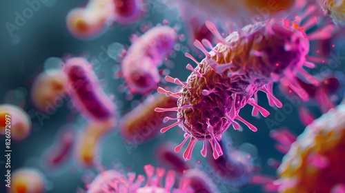 Close-up view of body microbes captured through macrophotography, intricate details of microorganisms