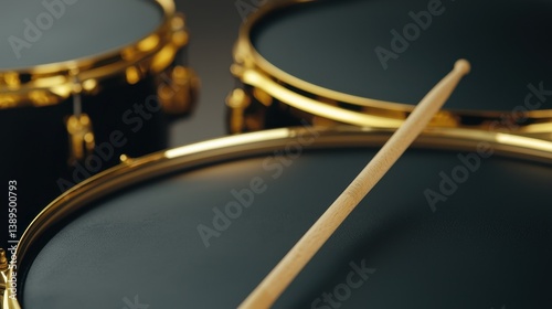 Close-Up View of Elegant Snare Drums with Wooden Drumstick