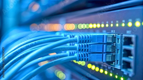 Close-Up View of Ethernet Cables Connected to Network Switch in Data Center Environment